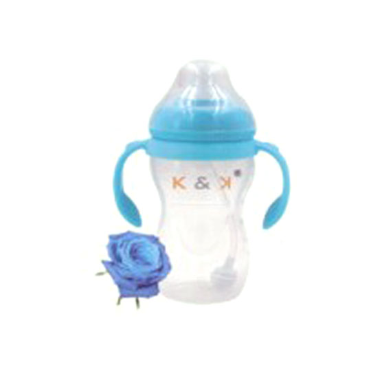 This is a 270ml feeding bottle with a straw and a wide neck. It is made of high-quality PP for a long service life. This PP feeding bottle with dual handles is ideal for daily use.
