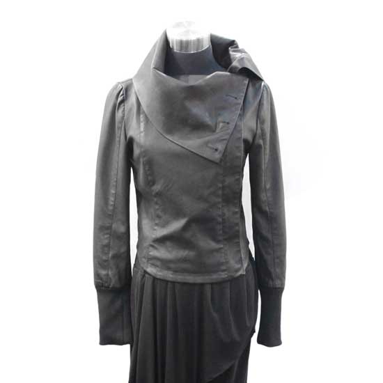 This displayed PU jacket flaunts a charcoal gray hue. It comes with a drape collar and a slim-fit design. The refined ladies’ PU jacket is easy to mix and match.