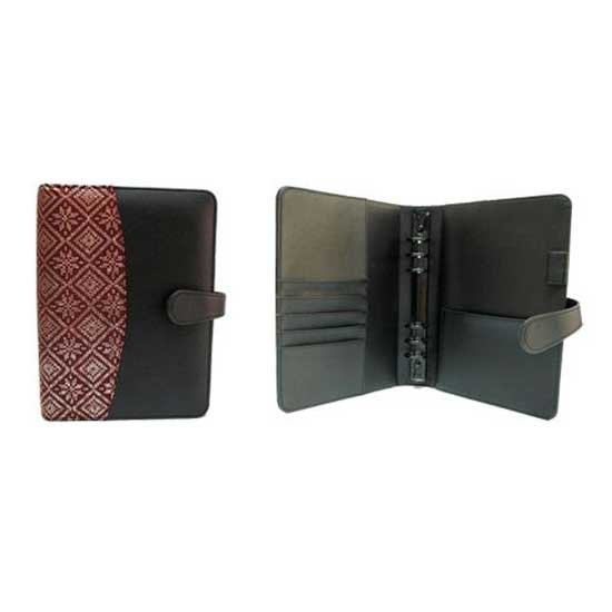 This PU schedule cover comes with a classical pattern in red harmonizing with a contrasting dark fabric. The card slots and pen holder allow you to bring the necessary items along with you. The snap button closure and the 6-ring design give a firm protection to your schedule.