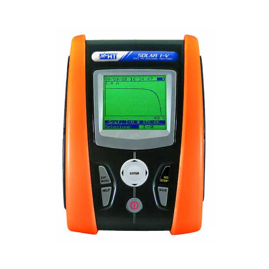 This PV installation recorder is designed to meet any requirement of photovoltaic installation specialists. Further to providing the possibility of measuring and recording the efficiency of single-string and single-phase photovoltaic systems, this device also measures the I-V characteristic of both a single module and module strings. Thanks to the Solar I-V, the operator can test the photovoltaic system and, should it give a negative result, immediately identify the problems of the system in order to promptly solve them. Solar I-V is provided with the remote unit Solar-02 which permits the remote measuring of irradiation and temperature with preliminary automatic synchronization between main unit and remote unit. Solar-02 is positioned next to the photovoltaic modules and it is connected to the probes for measuring environmental parameters. The synchronization between the two units guarantee the necessary contemporaneity of measurements. In the case of PV efficiency recordings, this grants the right efficiency calculation. For I-V curve measurements, the synchronization permits to extrapolate the I-V curve at STC without using long extension cords cable. Solar I-V allows carrying out efficiency recordings over time with programmable integration period from 5 seconds to 60 minutes. Each value is automatically saved in the internal memory and can be downloaded onto the PC for subsequent analyses. The measured I-V characteristic is not affected by the resistance of the measurement cables, as the measurement is carried out with the 4-terminal measuring method. Solar I-V also manages a database of photovoltaic modules, which can be updated at any time. The measured values, correctly reported at standard test conditions, are immediately compared with the values declared by the manufacturer to give the OK/No result of the test. The operator must not do any calculation, the instrument carries out the comparison rapidly and automatically. The instrument can be interfaced with accessory MPP 300, which extends the characteristics of Solar I-V by enabling recordings on single-phase and three-phase, single-string and multi-string (up to three strings), single-inverter and multi-inverter photovoltaic systems (therefore also in three-phase systems provided with three single-phase inverters).