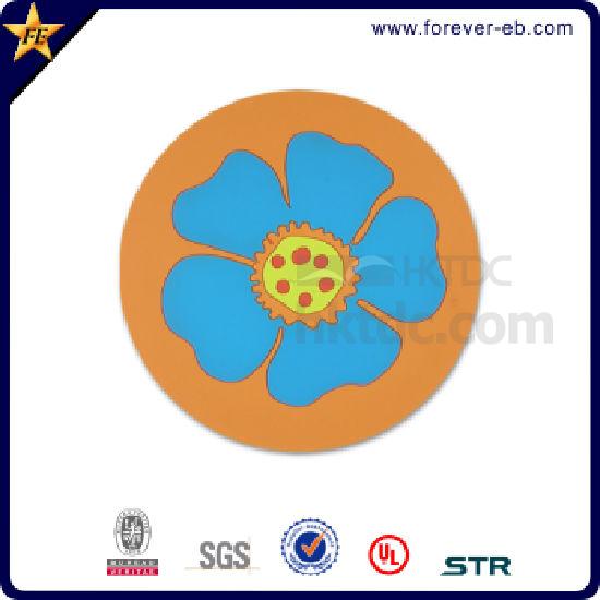 The displayed coaster is made of PVC and has a stylish and functional design. It comes in a round shape and is adorned with a flower on the surface. This coaster offers good resistance against scratches and moisture and can provide good protection to table surfaces.