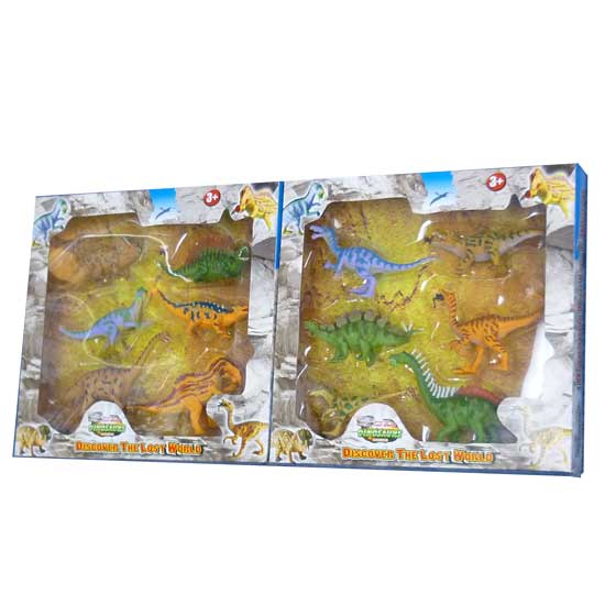 As shown is a set of mini dinosaur models for children. The dinosaurs are made with realistic details in sharp colors. These toy dinosaurs bring great fun for children who fancy ancient creatures.