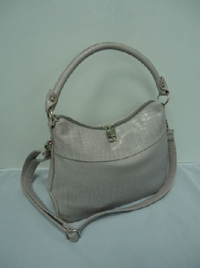 Ground your weekend ensembles with undeniable sophistication from this PVC handbag. The sturdy outline details a curved top zip fastening, pairing a tubular shoulder strap and an adjustable flat strap for cross body wear. Its subtle crocodile patterns further lends a luxurious touch to the modish light purple exterior.