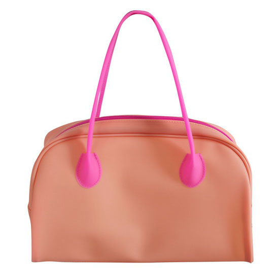 This is a handbag with a unique and neat appearance. It is designed in orange with bright pink handles. Made of high-quality PVC material, this bag promises an extra-long service life.