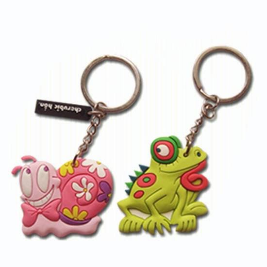 This is a PVC keychain featuring a cute animal design. It helps you personalize your handbag or backpack. The keychain is attached with a metal ring.