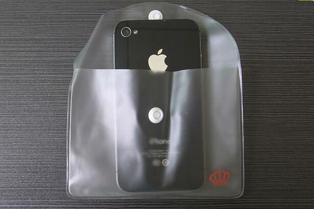 PVC mobilephone bag displayed is made of PVC material