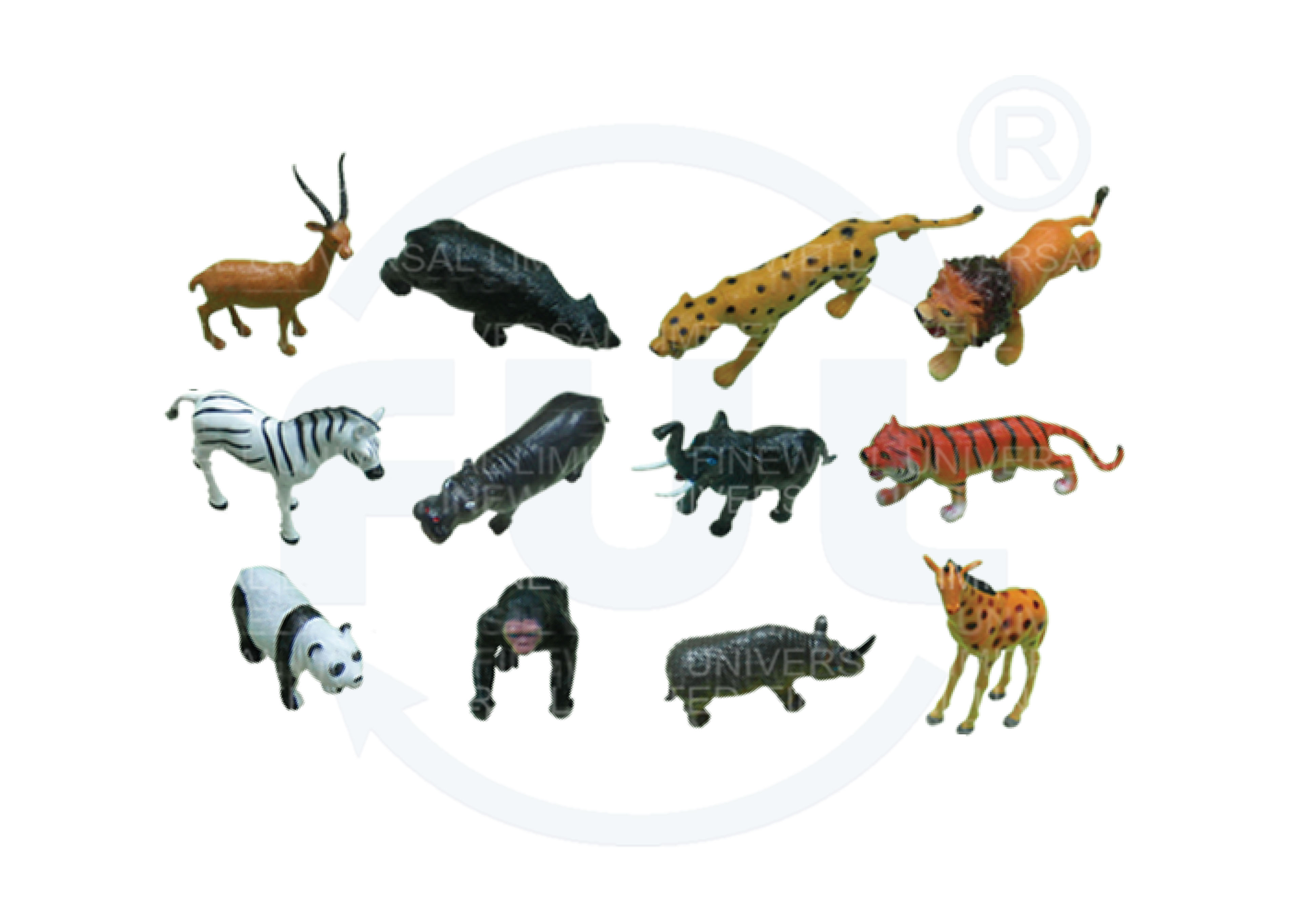 • Twelve toy animals in assorted designs like lions, tigers, elephants, etc.