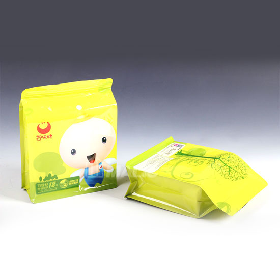 This is a packaging bag with a flat bottom. It can stand freely to offer an excellent displaying effect. This bag can be added with a lock zip for repeated use.