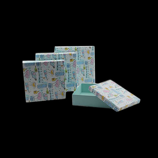 This packaging box is professionally made with rigid cardboard for excellent hardness. The square-shaped cardboard box can be used for packing garments, DIY crafts, toy sets, etc. The lid is printed with lovely drawings to match perfectly with the mint-colored box.