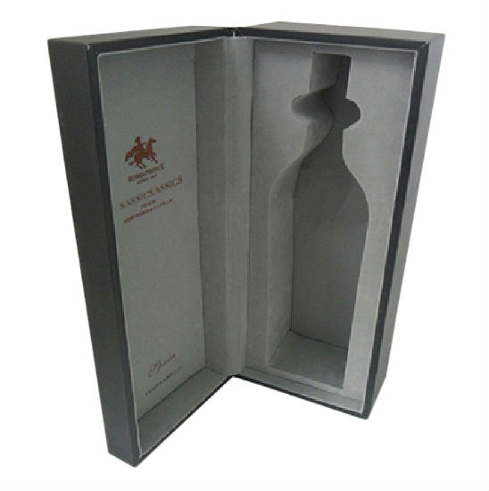 Well-made with extraordinary quality, this deluxe rectangular wine box presents your wine decently. The lined interior has an insert with the silhouette of a wine bottle, which offers a snug protection for the fragile bottle. It can be left upright and open to display the wine for promotional purposes.