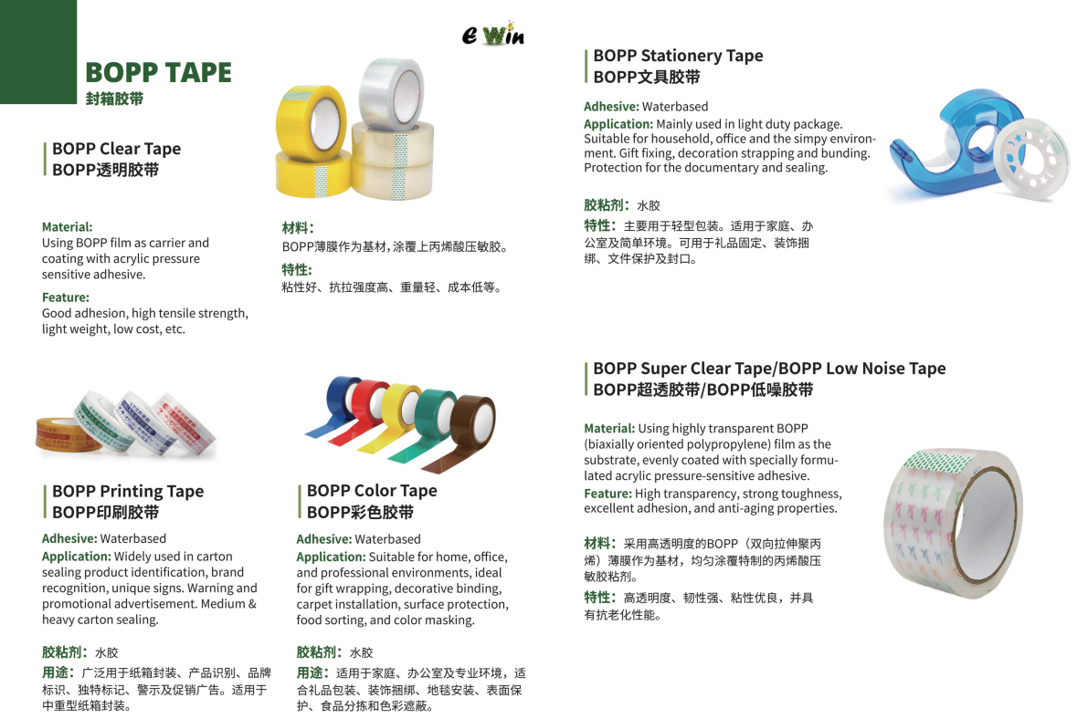 Strong adhesion,High tensile strength,Good durability,Smooth unwinding,Cost-effective