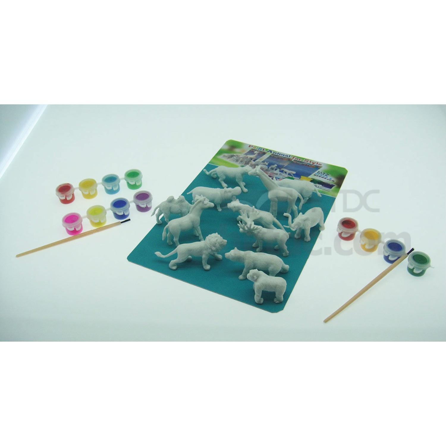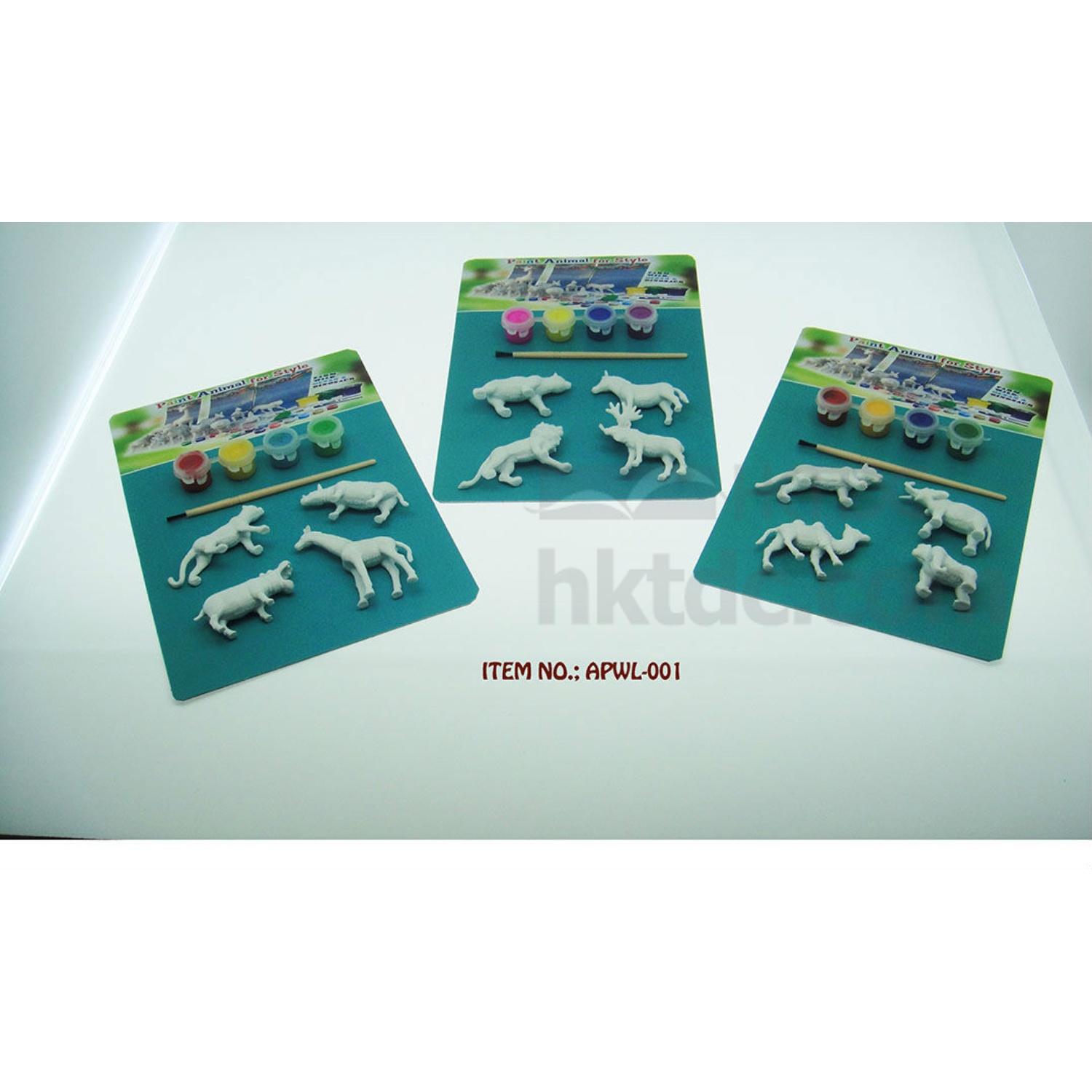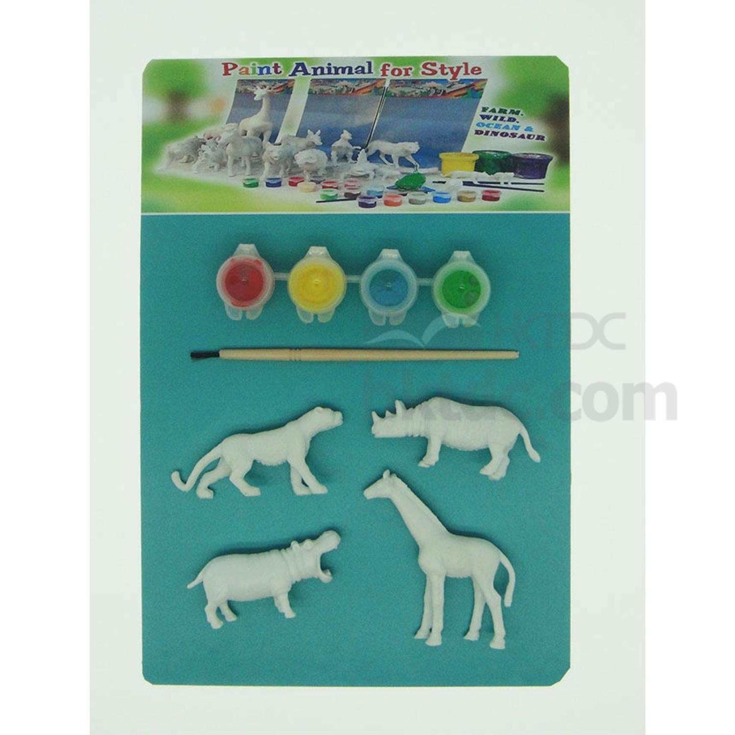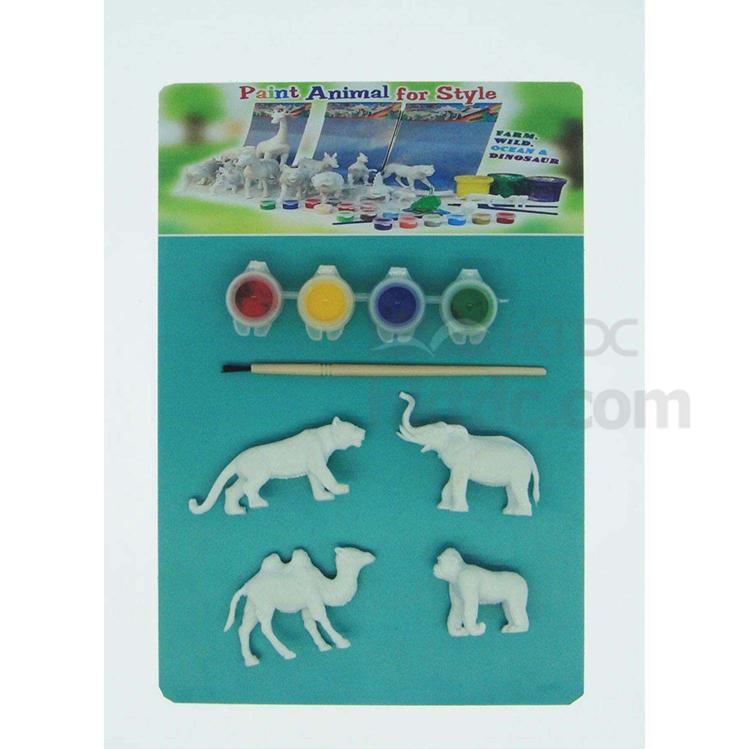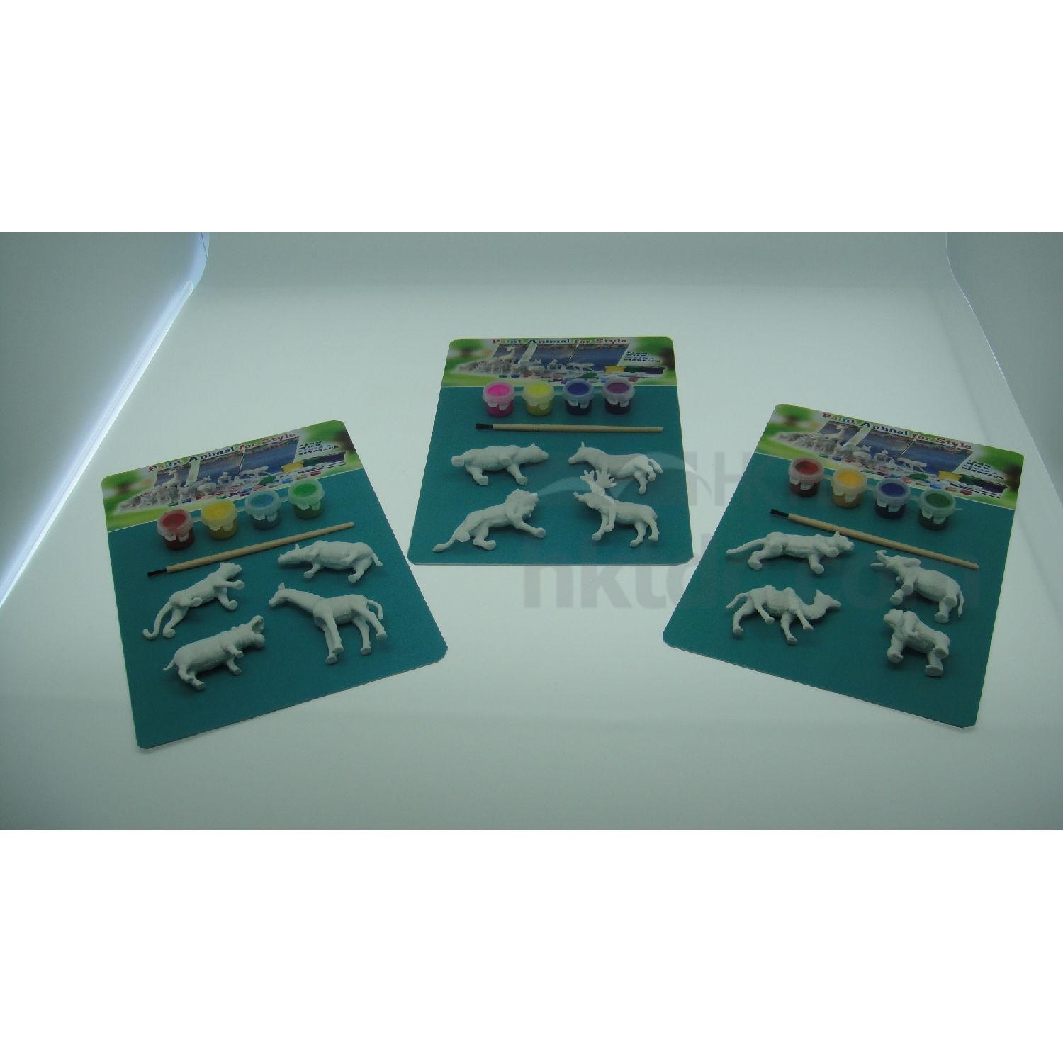 4 pcs white color non-PVC wild animal , with 4 paint color with 1 pc brush on blister card