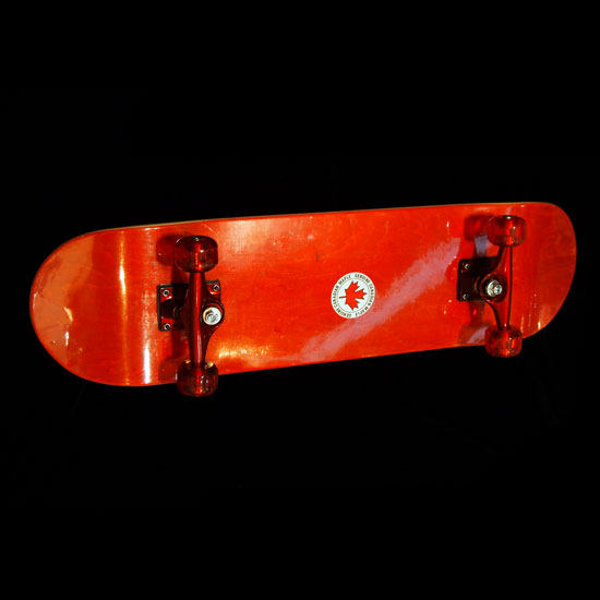 This stylish skateboard features a glossy red finish. The skateboard deck is finely crafted of quality hard wood for enhanced durability. The skateboard is perfect for training your body balance and flexibility.