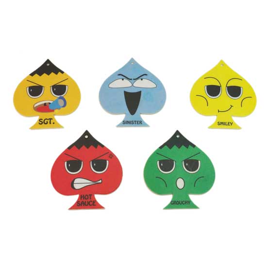 This paper air freshener comes in a distinguishing spade's shape with a humorous cartoon face. The fragrance added can last for up to a month with a strong scent. This decorative air fresher definitely adds a vivid touch to your space.