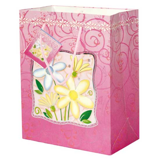 The rectangular-shaped printed paper bag captures your eyes at the first glance with its bright design in pink. The glamorous floral patterns make it a favorable piece especially for ladies. The solid design promises to let you organize multiple items nicely in the bag. This printed floral paper bag is an exceptional choice for packing ladies' gift items.