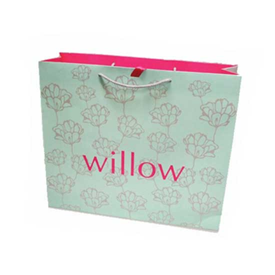 This subtle paper bag stands out from the rest with the floral patterns and the pinkish word “willow”. Constructed from high quality paper, the printed bag guarantees durability. There are different sizes available for your selection.