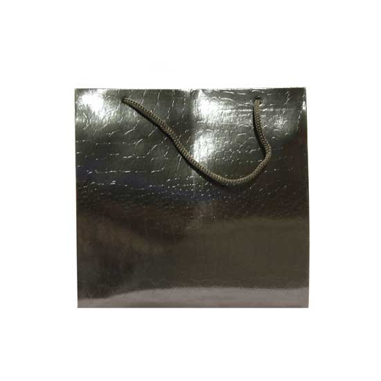 This is an allover black paper bag that is completed in a highly glossy finish. It comes with a drawstring handle at top for easy and convenient carrying. This paper bag is widely used in different packaging purposes.