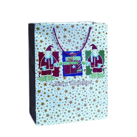 This is a high-quality paper bag with a charming appearance. It is designed with colorful star patterns for an eye-catching look. This printed paper bag features two durable handles on the top for easy carrying.