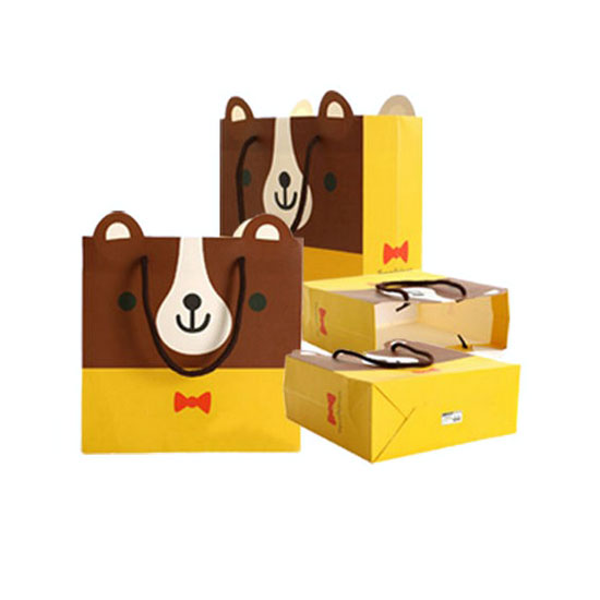 This is a paper printed bag that features a cute and lovely look in bright colors. The two top handles allow easy and convenient carrying. This paper bag offers long-lasting durability.