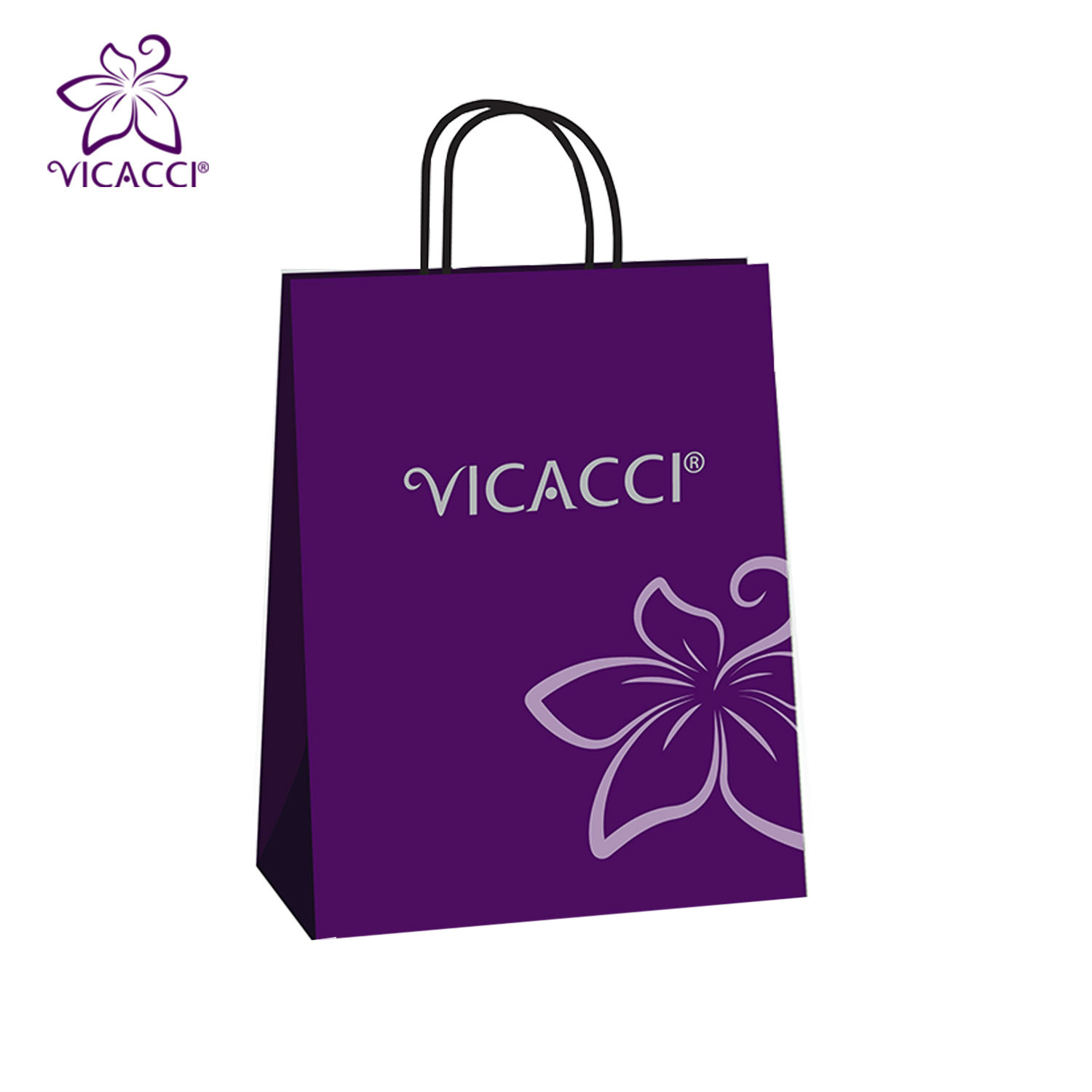 This shopping bag is made of paper and is printed with brand name and logo on the exterior. It has a rectangular compartment with side gusset structure for storage and has a pair of handles on top. The shopping bag is excellent for packaging use and adds a classy touch to the packaged products.