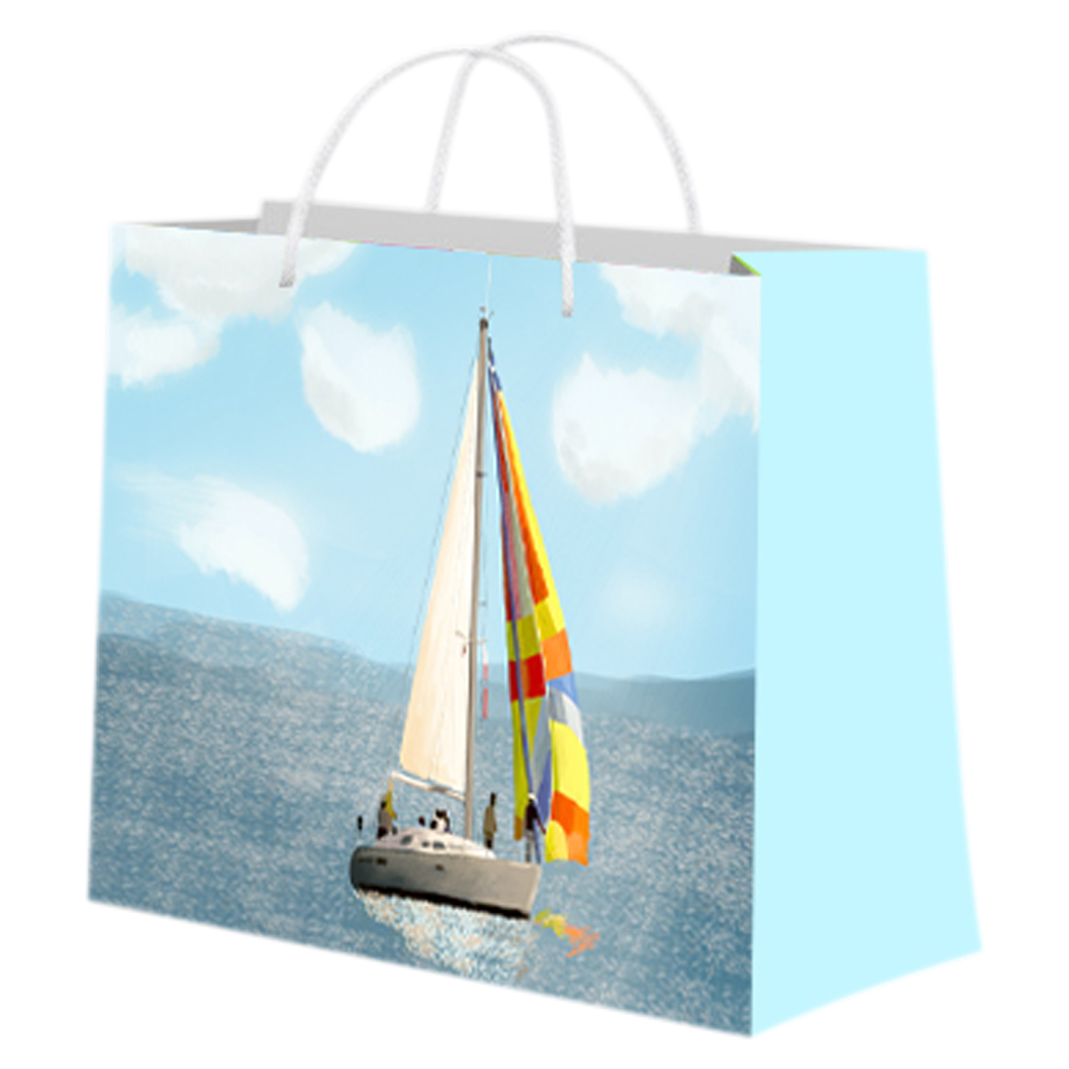 Provide a reliable packaging solution for your products with this paper bag. It has a gusseted rectangular compartment for storage and has a pair of handles on top. This paper packaging bag is printed with colorful artwork on the exterior and can add a stylish touch to the packaged product.