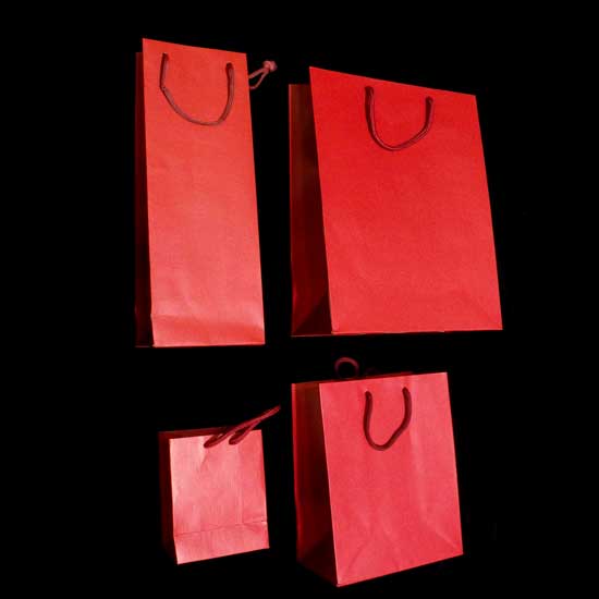 The paper bags with matching handles come in striking red finishing. They are finely made with embossed paper for lasting durability and beauty. Customized printing is available on request.