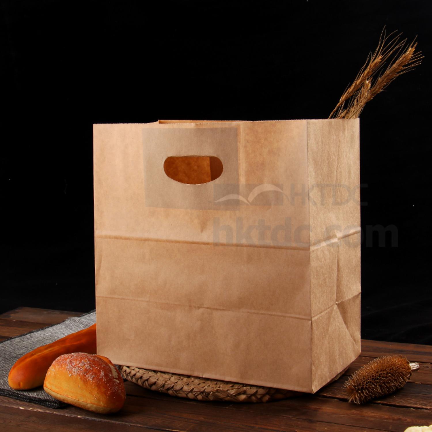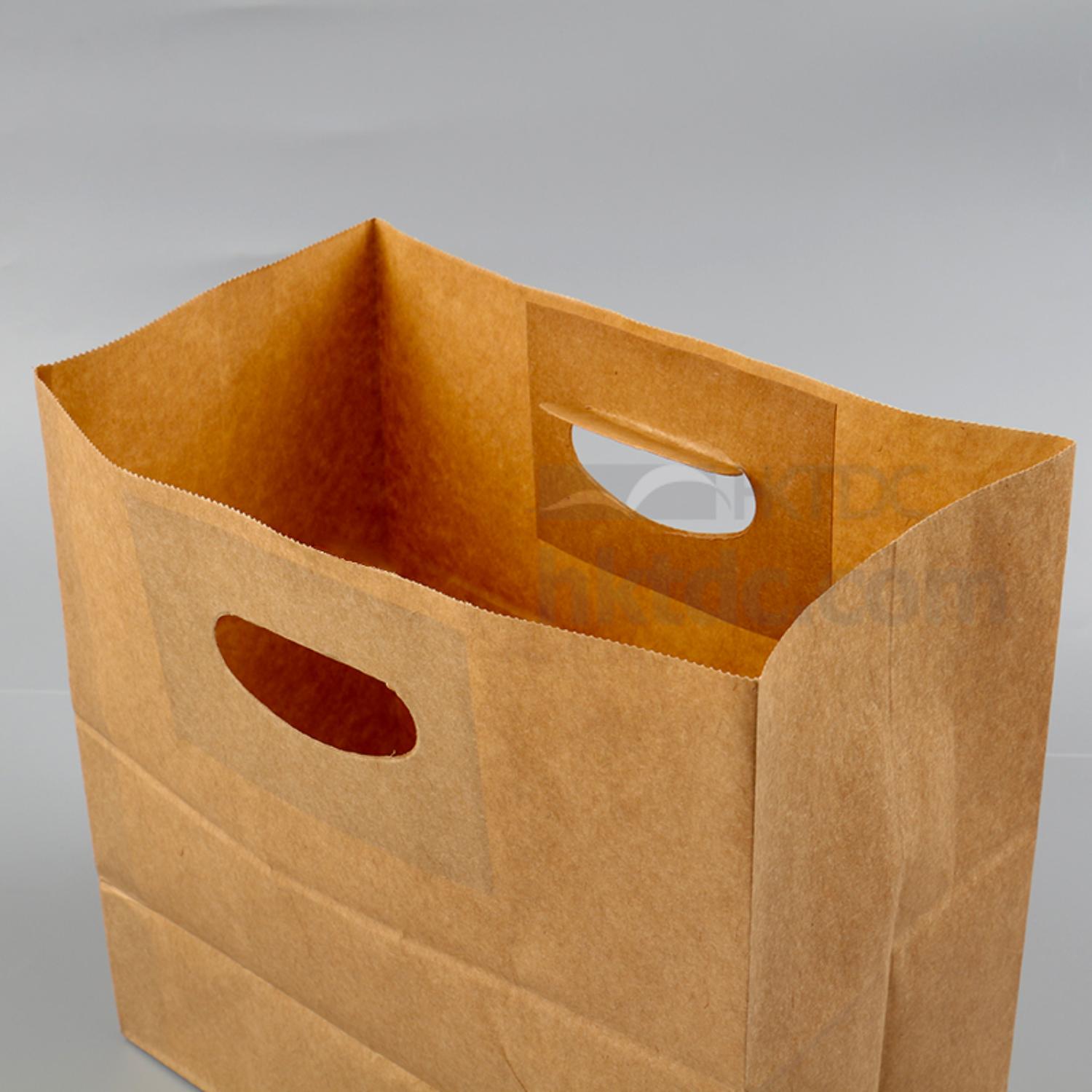 This die cut handle bags are popular used in take out food delivery, such as McDonald, KFC and different coffee shops. The bags can be hold on arm and carry on hands.