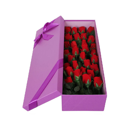 This is a gift box with a dainty and elegant design. It comes in purple with a matching bow. This box is a great choice for packaging assorted gifts.