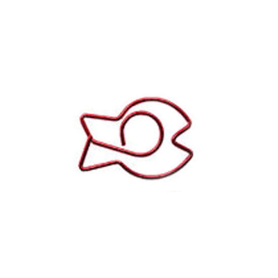 This is a paper clip in a fish shape. It holds several sheets of paper together. The paper clip is made of durable materials for long lasting usage.