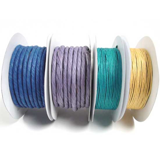 This series of packaging cords features solid colors of blue, purple, green and yellow. They are constructed from paper for a unique touch. These vibrant paper cords make a great complement for packaging use.