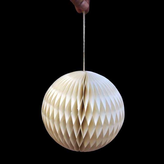 This paper decoration features a ball-shaped design for attractiveness. The sophisticated craftsmanship highlights the whole look. This white-hued paper decoration adds spice to your room easily.