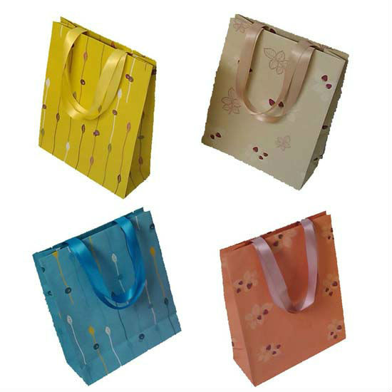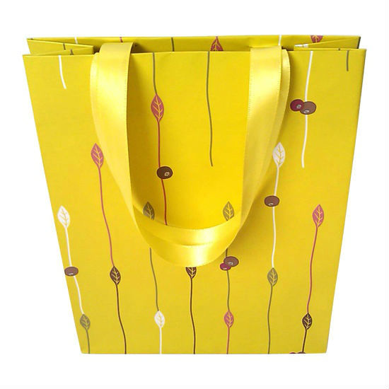 Featured here is a rectangle-shaped gift bag with one main roomy compartment. It has double ribbon carrying straps are in matching colors and is convenient to be carried on hands. This foldable bad is eye-catching and has a practical design.