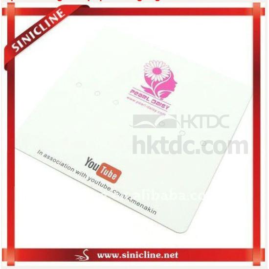 - The jewelry card is made of white paper, silver foil stamping logo, die cut shape with silver eyelet.