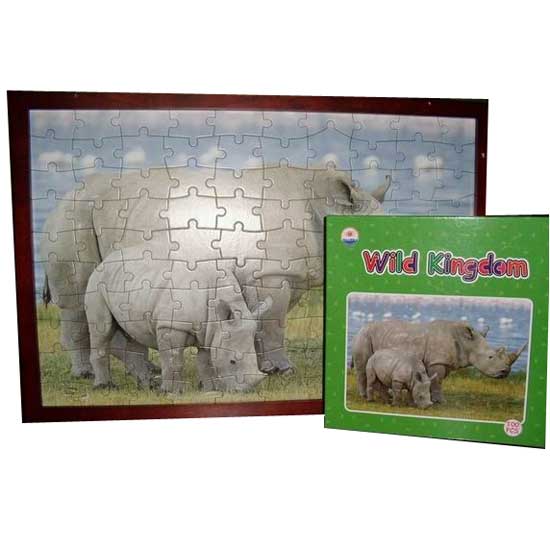 The paper puzzle is printed with a photo of two rhinoceroses for a theme of the wild kingdom. The jigsaw puzzle is made of paper with a quality laminated surface. This paper puzzle is a fun game to develop little ones' brain.