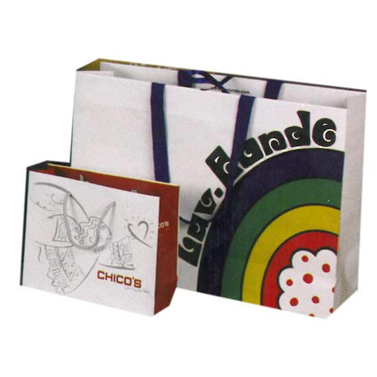 This paper shopping bag is made of top-quality paper. The glossed surface is waterproof and durable. The company logo is printed on delicately with the advanced digital printing technology.