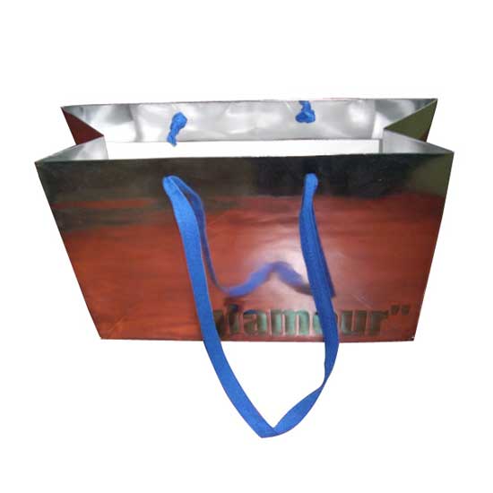 This paper shopping bag is made with metallic, shiny paper for a special effect. It effectively attracts onlookers' attention and serve promotional purposes. Designed with cotton rope handles, this bag is comfortable to carry too.