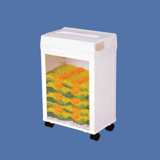 This stylish white hued paper shredder is designed for factory use. It is professionally engineered to guarantee top security and high-speed performance. The wheel design ensures moving around easily.