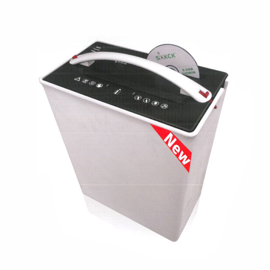 This paper shredder comes with a white finish. It shreds CDs and paper efficiently. It comes with a handle for easy carrying.