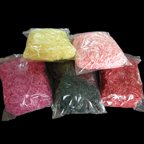 Featured here is a series of paper strips in eye-catching colors. These winkled paper strips are finely cut for a delicate touch. These paper strips offer an effortless way to add style and volume to your gift packaging design.