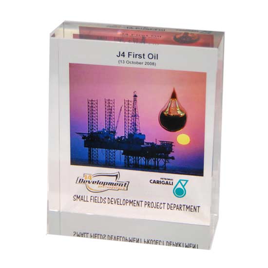 This gorgeous paper weight features a rectangular construction. It comes with a beautiful picture in the center, which showcases a touch of sophistication. This functional paper weight is suitable for office use.