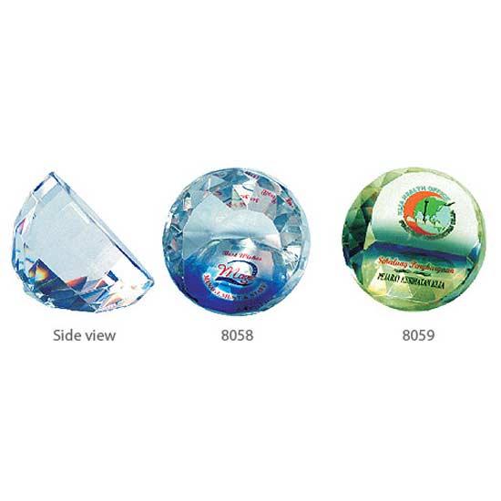 This gorgeous crystal paperweight is elegantly shaped into a dome with a sheeny surface. With the company's logo inlaid inside, it becomes a perfect promotional gift. It keeps your documents organized in place all the time. Simply use this fine paperweight for function and style.