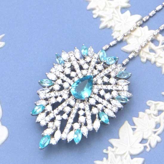 This heart-shaped pendant is ornamented with bright blue Paraiba tourmalines in rice and pear shapes. The white and blue hues exude a contrasting touch. This dainty pendant is surely easy to mix and match.
