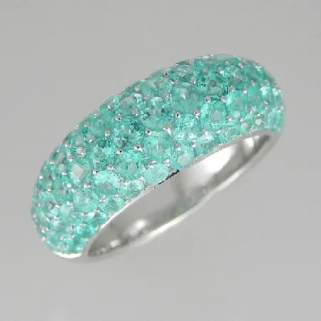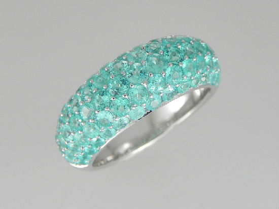 This elegant ring has a surface encrusted with paraiba tourmalines. The uniquely colored gemstones makes the ring a ravishing piece. The exquisite ring goes well with your daily outfit.