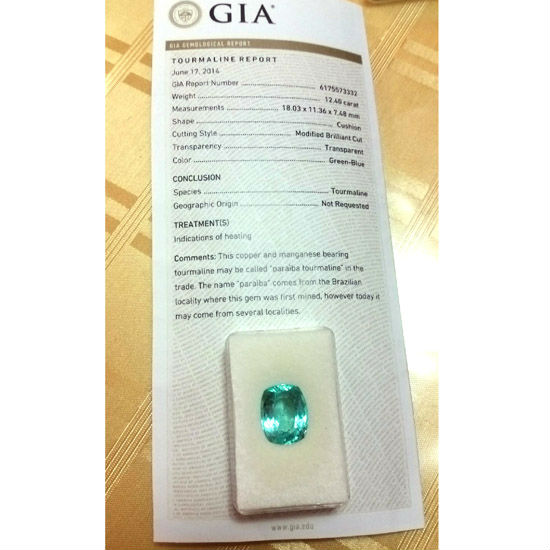 GIA certified cushion cut very nice one of kine piece of Pariba Toumaline
