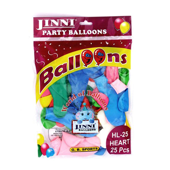 This is a bag of 25 party balloons coming in attractive colors. The balloons come in a heart shape for a lovable look. They are long lasting and do not break easily.