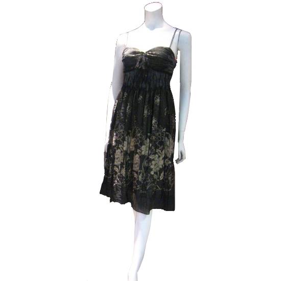 The elegant knee-length party dress comes with an alluring ruffled sweetheart neckline and spaghetti straps. It features a delicately stitched empire waistline and a draped hem. It is fully decorated with vivid floral prints for more exquisite detail. Tailored with light and soft fabric, it definitely casts some adorable flares to your image.