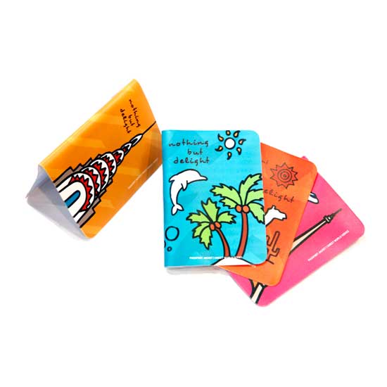 This is a passport cover printed with cute and lovely patterns in bright colors. It is made of high-quality PVC for enhanced durability. Various patterns and colors are available for your selection.