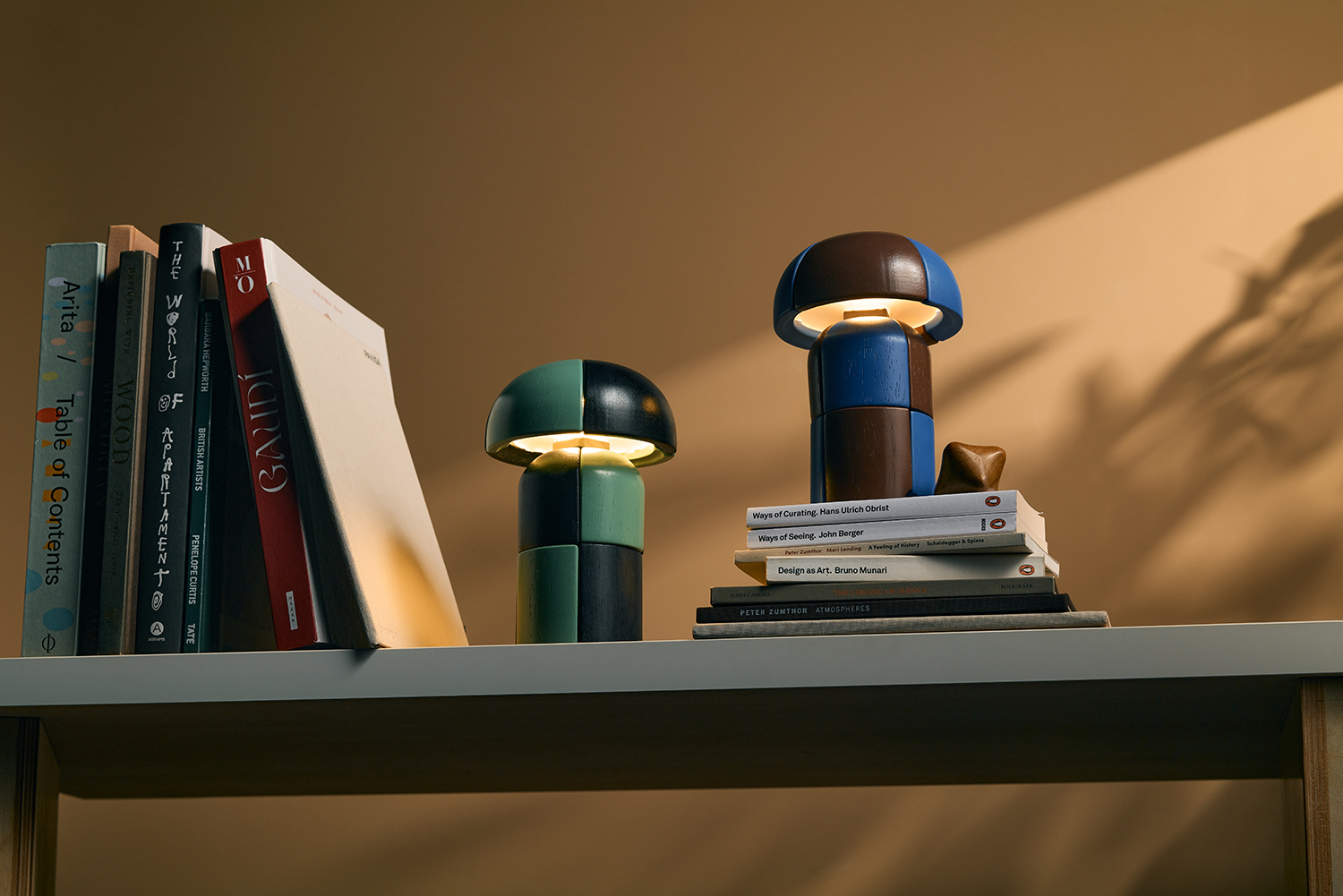 This mini size lamp are made of small components tightened together with elastic thread. The lamp is wireless and rechargable, which makes it perfect for dinning table settings. The battery stay up to 6 hours.