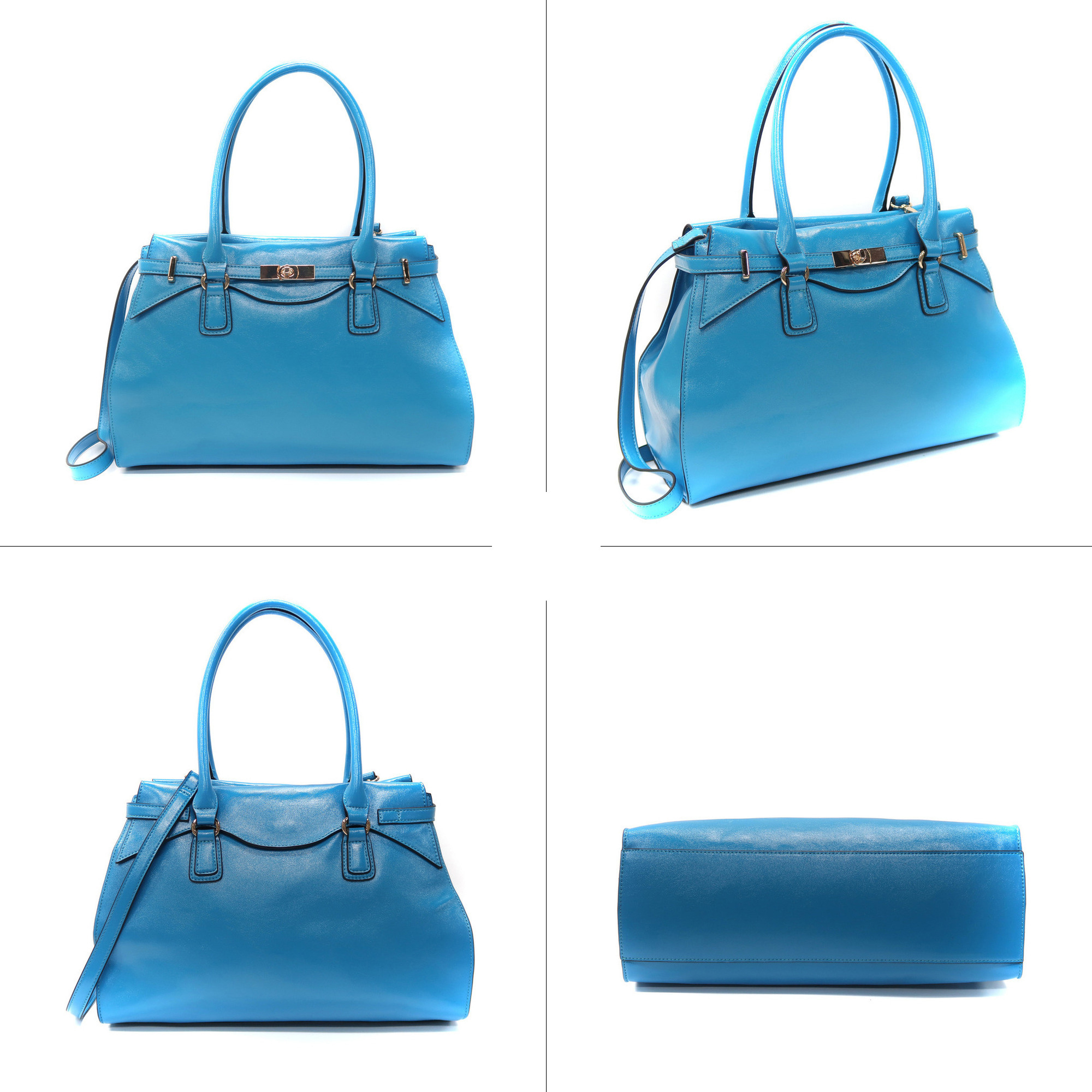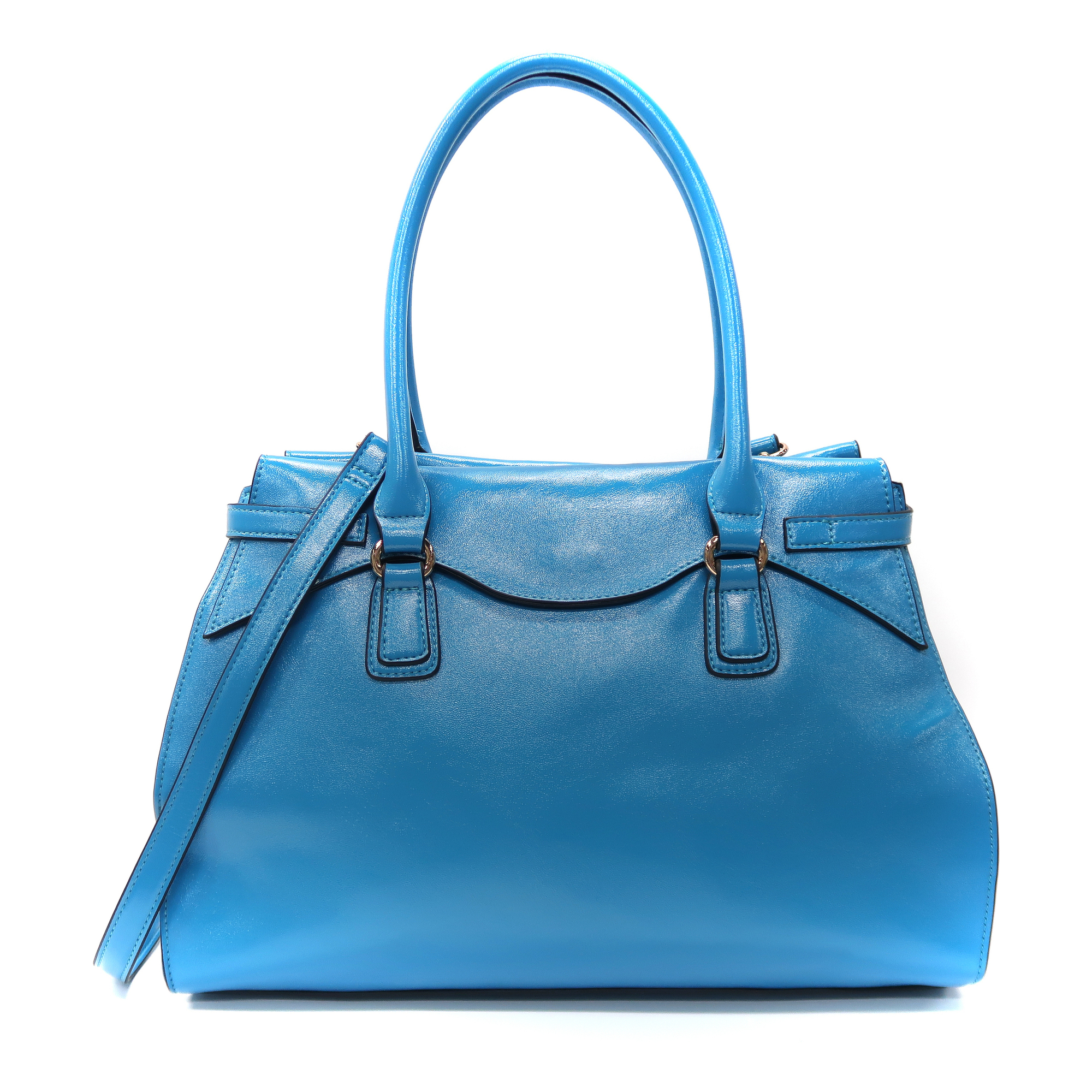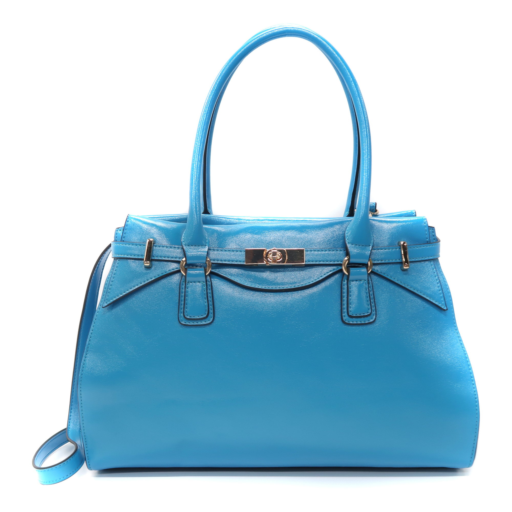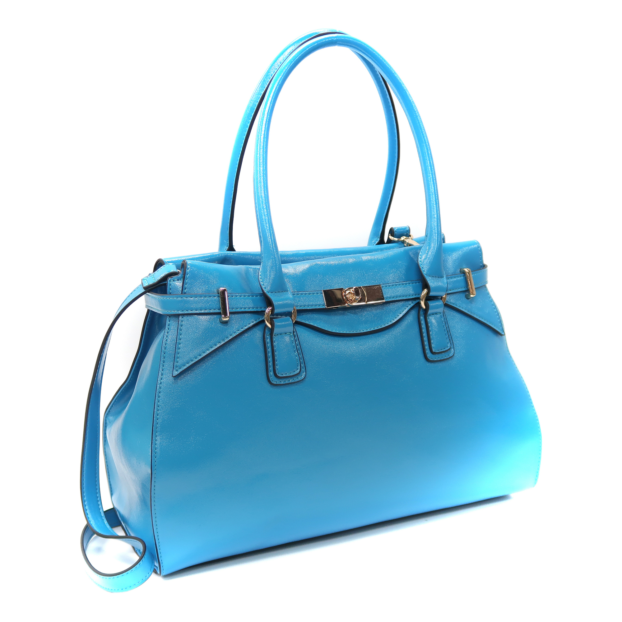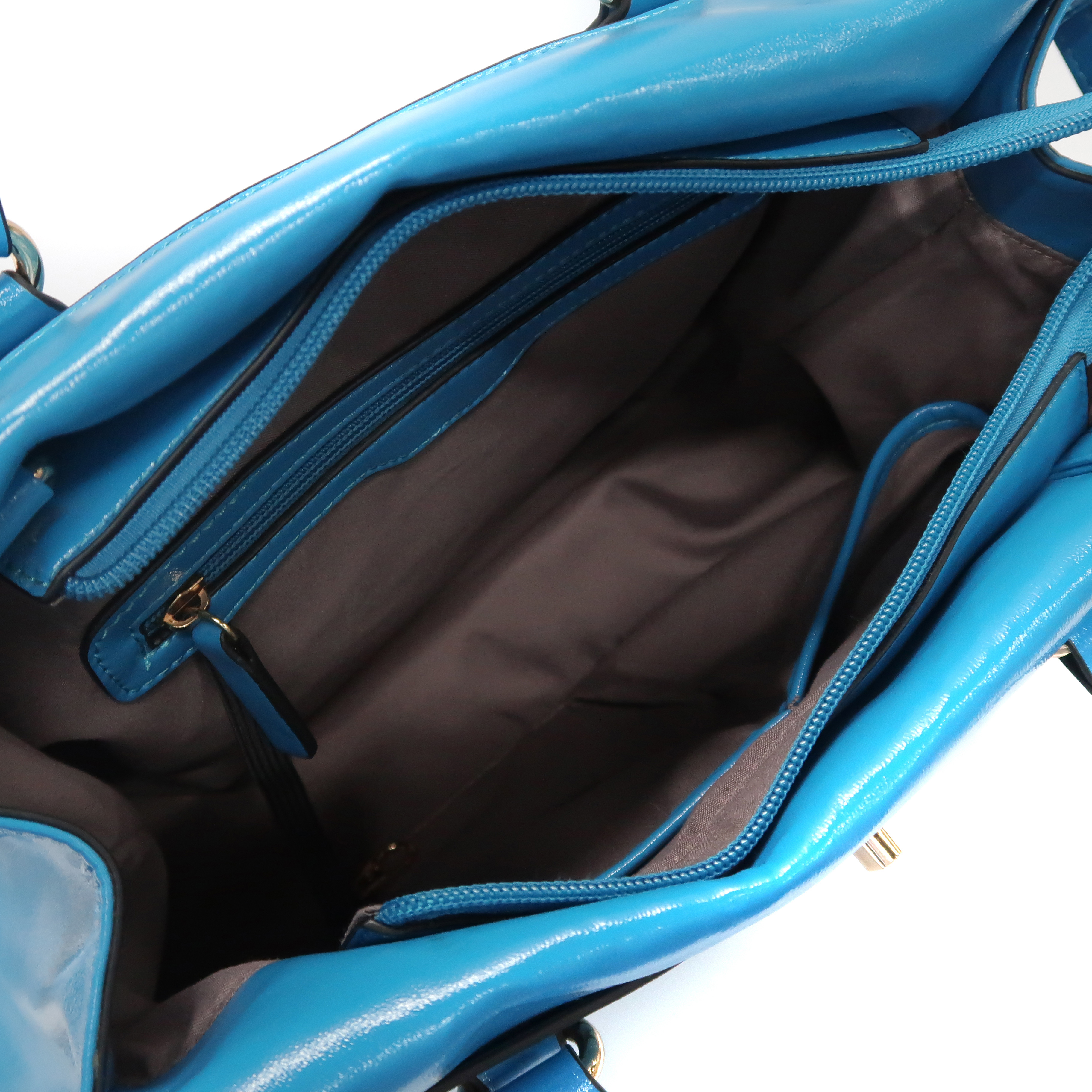 Patent Imitation Leather Women handbag Satchel bag Zipper closure French blue