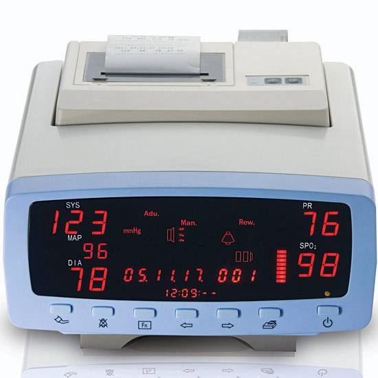 This patient monitor is specifically designed for measuring the non-invasive measurement of blood pressure (NIBP), pulse oximeter oxygen saturation (SpO2) and pulse rate of patients. The large LED screen is easy to read with clear symbols to ensure accurate reading. It makes an indispensable device to keep track of patients' statuses.